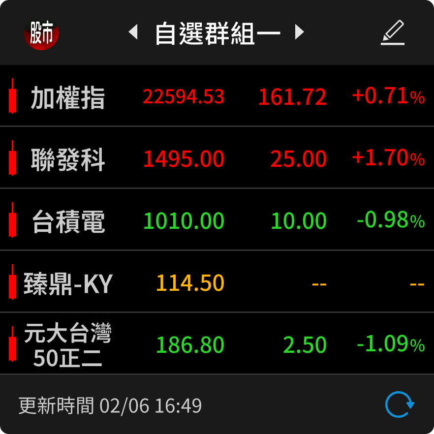 由三竹資訊開發,提供即時股價查詢、完整技術圖表、自訂觀察清單與整合券商交易功能。